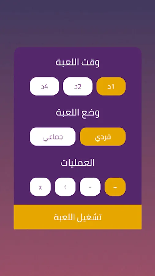 * The game contains addition - subtraction - division - multiplication