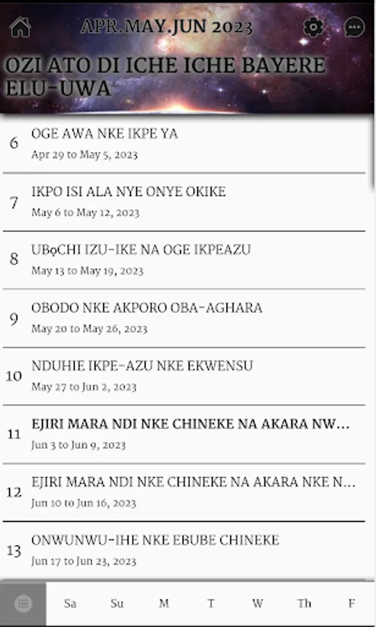 Quarterly Seventh-day Adventist study guide for native Igbo language speaker from South Eastern Nigeria. Also contains the Igbo SDA hymnal (abu otuto) and the Igbo bible