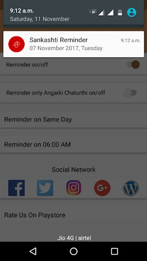 Set time and day for getting Ganesh god Sankashti Reminder, it works offline no need for internet.