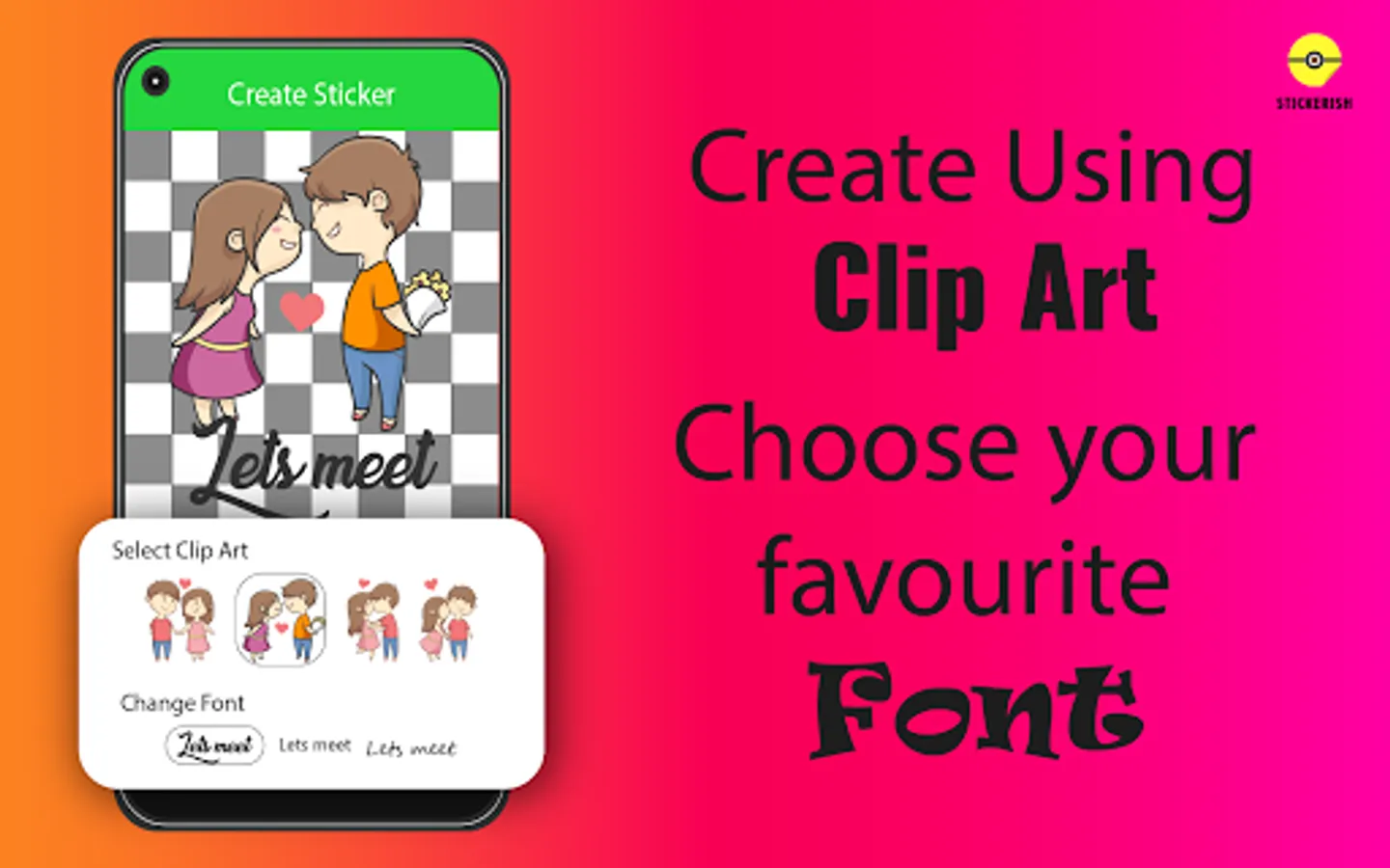 - Easily Design stickers using Clip Arts, Emojis with wide variety of Fonts.