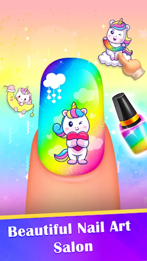 Rainbow🌈 : Embark on a colorful journey with the rainbow nail art game. Paint your nails with vibrant hues of the rainbow, blending shades and creating stunning ombre effects. Let your creativity soar as you design rainbow-inspired nail art that spreads joy and positivity with every brushstroke.