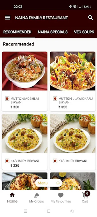 Using NAINA FAMILY RESTAURANT is the fastest way to order NAINA FAMILY RESTAURANT food online.