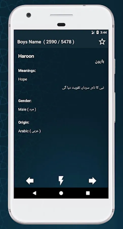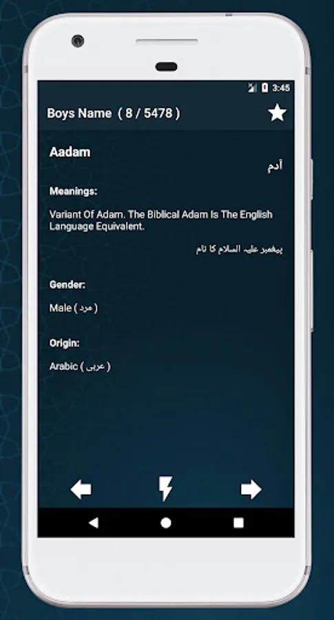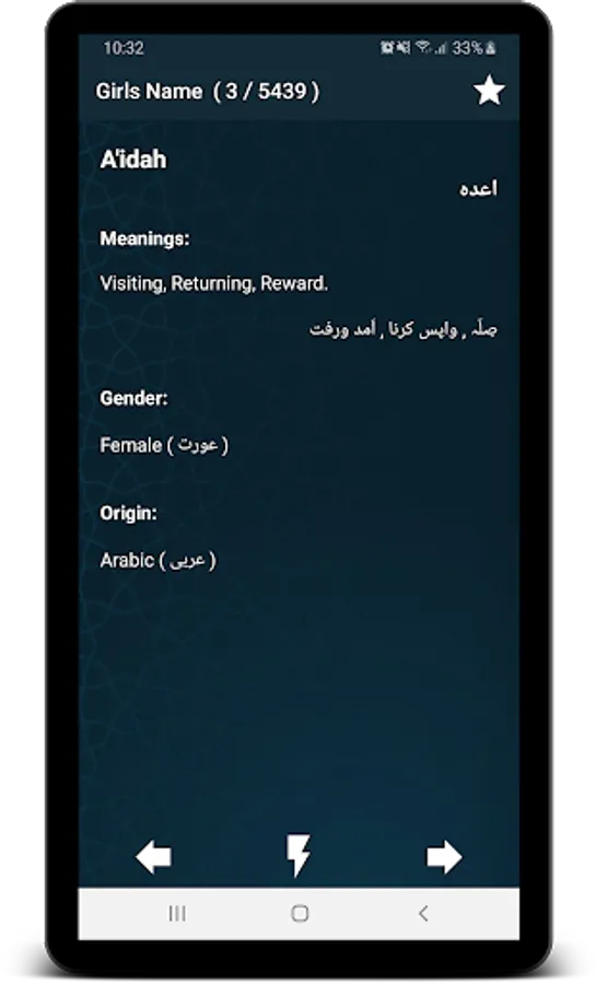 The name given to boy or girl at birth must be meaningful. Muslim names with meaning is important because The Prophet always changed the name of a person with unpleasant meaning. Muslims mainly chose the names of prophets, names combined with Asmaul Husna - 99 names of Allah (Names of God), names from history or the traditional Arabic names. This dictionary app contains a comprehensive name collection. This app is an excellent name selector to find Islamic names of boys and girls with their translation in both English and Urdu.