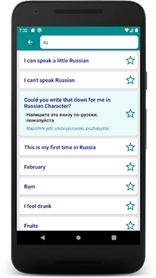 The Speak Russian app has many useful Russian phrases and words (e.g., βThank you!β, βHow much?β or βA table for two, please!β). When you tap a phrase, the app speaks it aloud. There is no guessing as to how to pronounce the words. Listen to pronunciation recorded by native Russian speaker to enhance your Russian speaking skills!