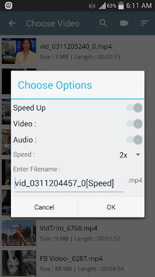 - Speed Video : Do video slow motion or fast motion (2x, 4x, 6x, 8x, 10x)