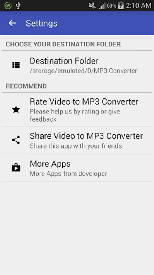 ** This application is NOT Youtube MP3 converter. You can convert ONLY videos that are in your device.