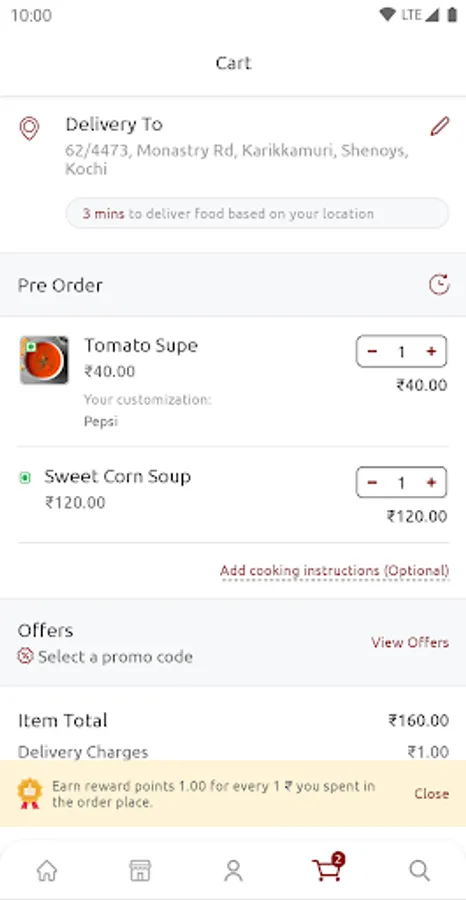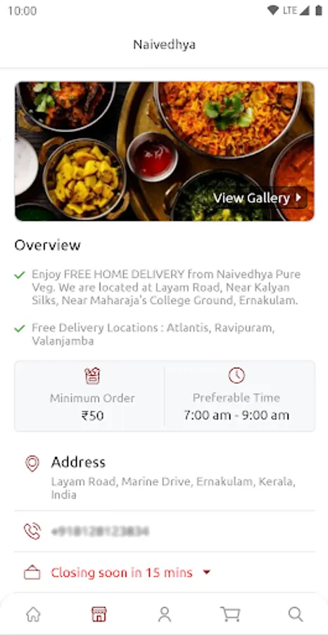 Enjoy FREE HOME DELIVERY from Naivedhya Pure Veg. We are located at Layam Road, Near Kalyan Silks, Near Maharaja's College Ground, Ernakulam. We offer free delivery within 3 kms radius.We have a reasonable charges after the free delivery area.