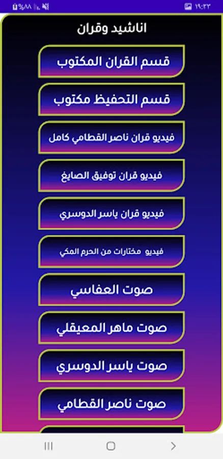 In this section, you will find the entire Holy Quran with the verse tracking system of the most famous readers, and when you watch a specific surah, the period you watched will be stored, and after that, Bilal will work in this section. We use the temporary storage feature. You will learn about all the features of the section after downloading the program because the explanation of the section is long