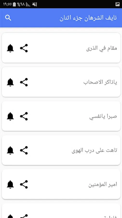 The songs of Nayef Al-Sharhan, just download the program, and then you can listen to the songs without the Internet. Any song can be shared with friends and it can be made as a tone for the device or a tone for the alarm or a tone for notifications