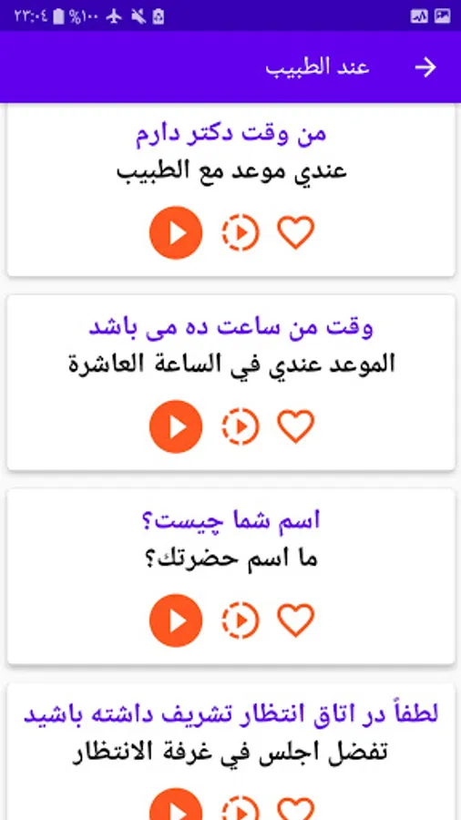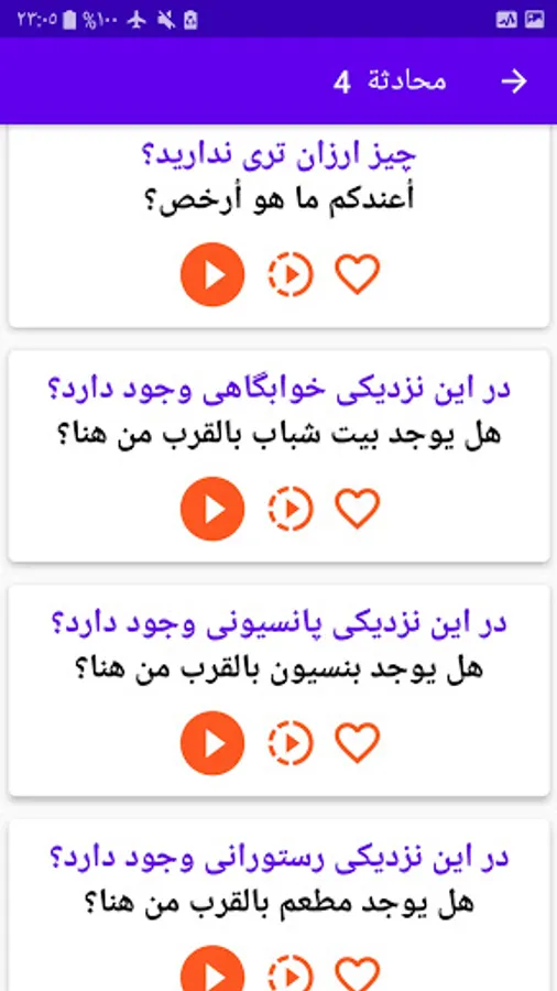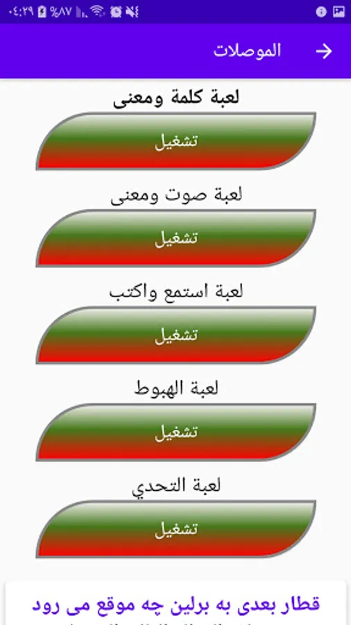 Through this game, you can listen to sentences or words in the Persian language and you will find three options for the answer with their meaning in the Arabic language. When you choose a wrong answer, the correct answer will appear to you through the dialogue box that appears after each answer