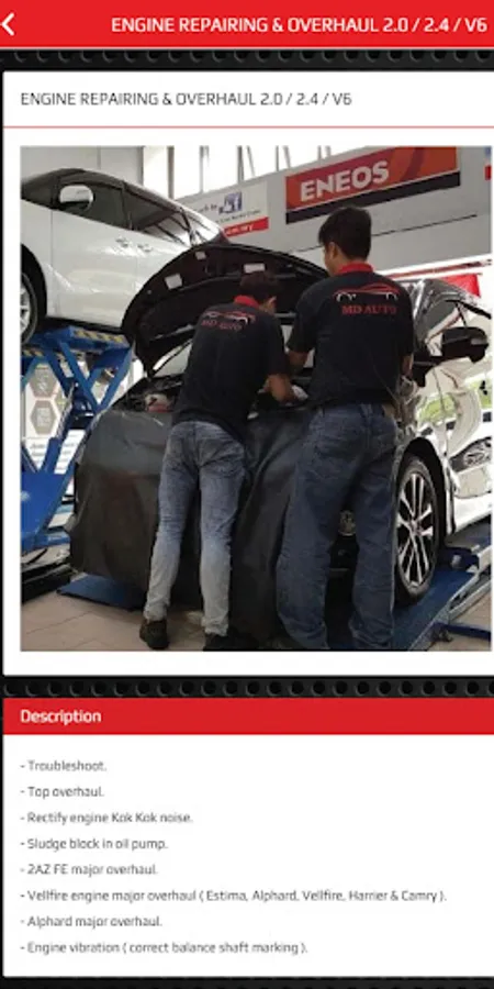 Has started since year 2008. The owner Kenny has 15 years experience in Toyota Mechanical Skills & has an achievement of being the customer choice as Toyota Recon Luxury Specialist For Toyota Vellfire, Alphard, Estima, Harrier & many more. Get help from our trusted workers for any kind of car trouble. MD Auto Care Service Centre app is here to the rescue.