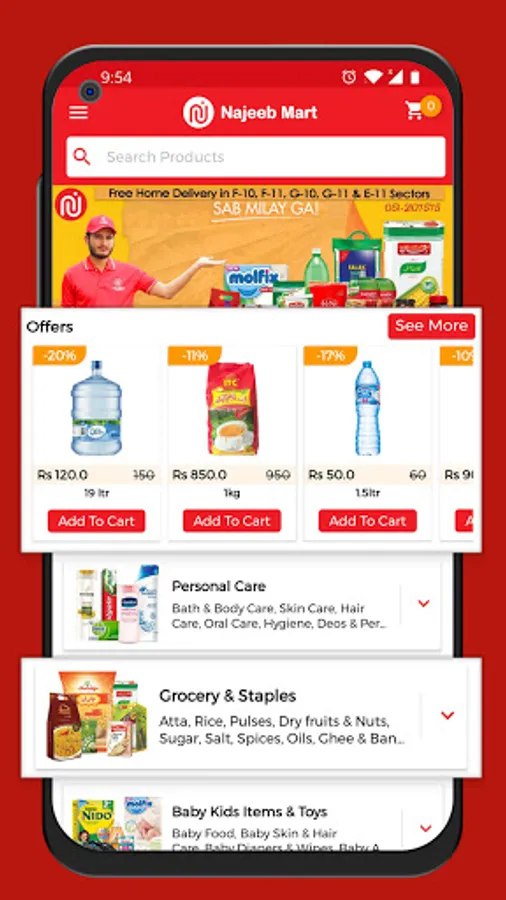 Najeeb Mart & Pharmacy - Online Free Delivery currently provides free home delivery service in Islamabad only. Please note that Najeeb Mart service is only available within certain areas of Islamabad including F-10, F-11, G10, G-11, E-11 & D-12. Contact our team via our hotline 0336-5119090, and they will gladly answer all your questions.