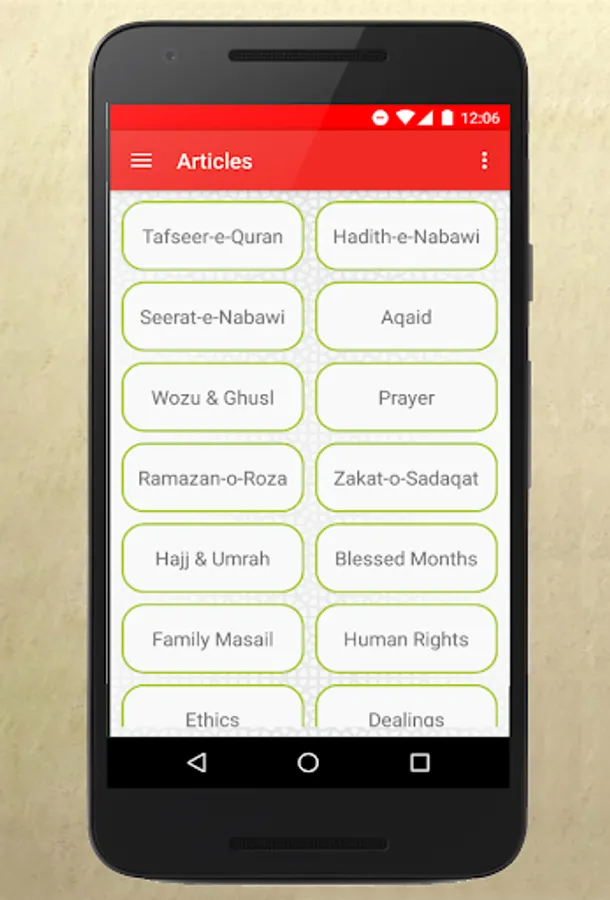 This app has been develped by using about 21 topics of daily life such as: Tafseer-e-Quran, Hadith-e-Nabawi, Seerat-e-Nabawi, Aqaid, Wozu & Ghusl, Prayer, Ramazan-o-Roza, Zakat-o-Sadaqat, Hajj & Umrah, Family Masail, Human Rights, Ethics, Dealings, History, Islamic Identity, Controversial Masail & Contemporary Masail.