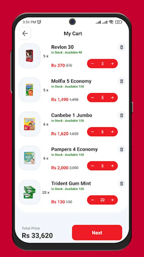 Through this app, you can search for Ghee, Oil, Flour, Atta, Rice, Dal, Pulses, Spices, Masala, Salt, Sugar, Organic Food, Dry Fruits, Biscuits, Noodles, Cold Drinks, Chips, Snacks, Tea, Coffee, Eggs, Meat, Laundry Detergent, Cleaning, Dish washing, Air freshener, Paper towel, Cleaning tools, Soap, Skincare, Shampoo, Conditioner, Oral care, makeup, duos, perfume, shaving, hair oil, face care, body wash, hand wash, sanitizer, baby care, taped Diaper, Diaper pants, wet wipes, baby food, etc.