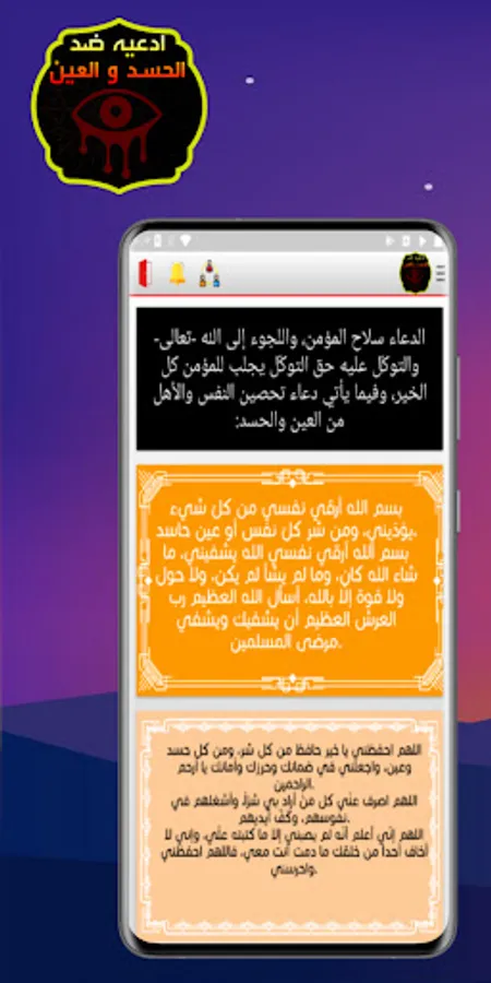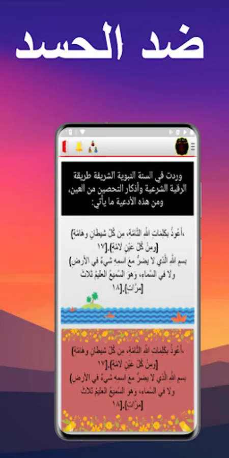An application that contains a set of verses and surahs from the Holy Qur’an against envy, as well as supplications for immunization from the Sunnah against the eye
