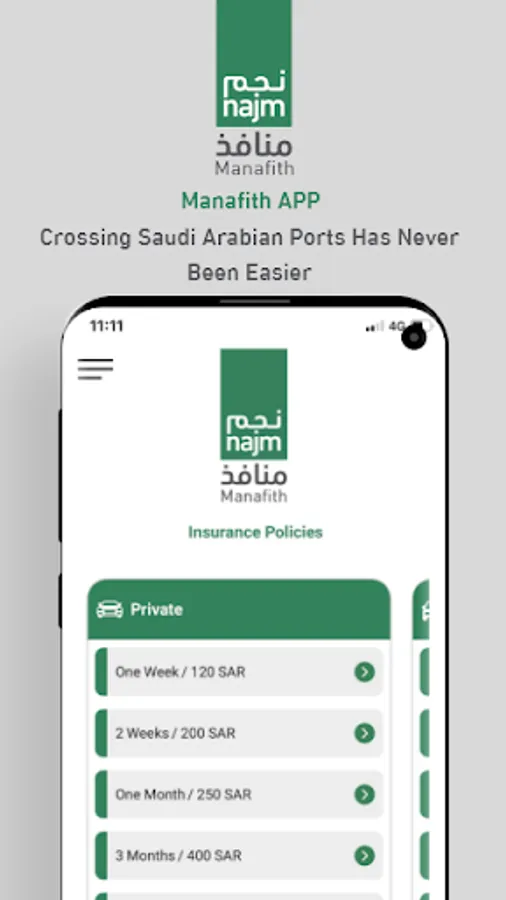 “Manafith” is the mandatory insurance system for foreign vehicles entering or passing through Saudi Arabia via its border crossings. The application help users to purchase and pay for the insurance policies online without the need to visit Manafith branch at the border.