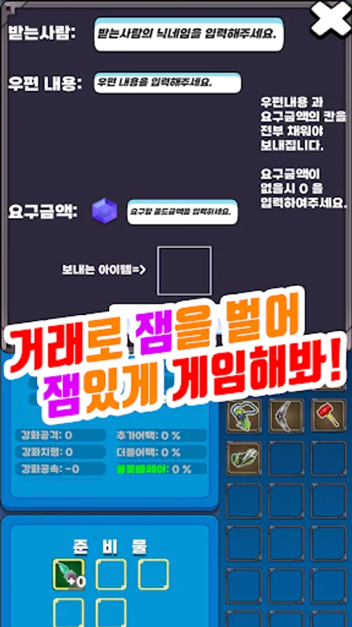 -그렇다면 우편을 통하여 다른 유저와 거래를 진행하세요!
