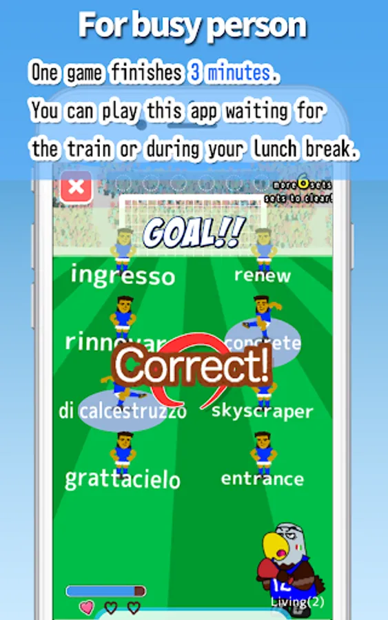 One game finishes 3 minutes. You can play this app waiting for the train or during your lunch break.