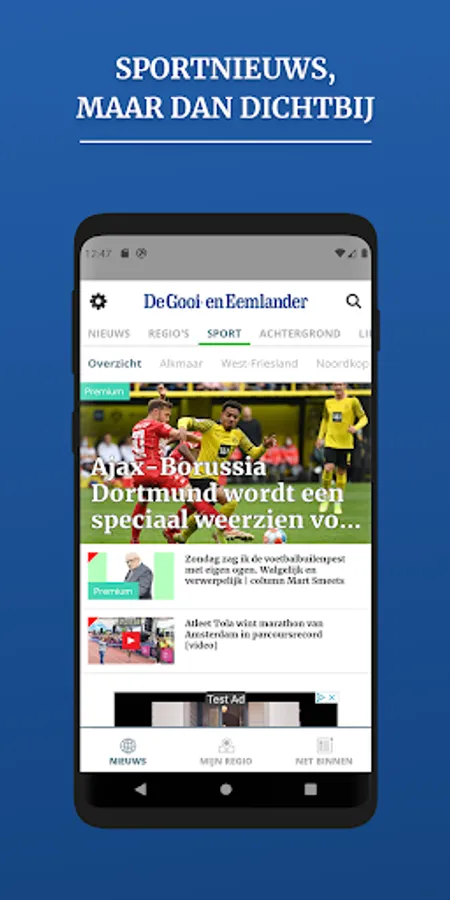 Follow the latest news from the region in the free news app from De Gooi- en Eemlander. With this app you will not miss anything. Whether it concerns news from your hometown or region, regional and national sports news, entertainment or 112 news, the De Gooi- en Eemlander news app will keep you informed!