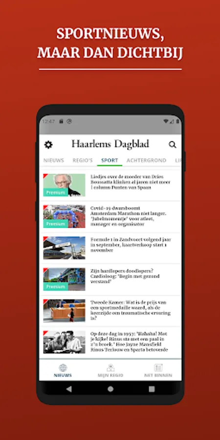 The news app is available for free. You will also find premium items in the app. These pieces offer the best of Haarlems Dagblad and the opinion of our well-known columnists. In the app, the premium items are recognizable by the green "Premium" label. These premium pieces are accessible to subscribers of Haarlems Dagblad.
