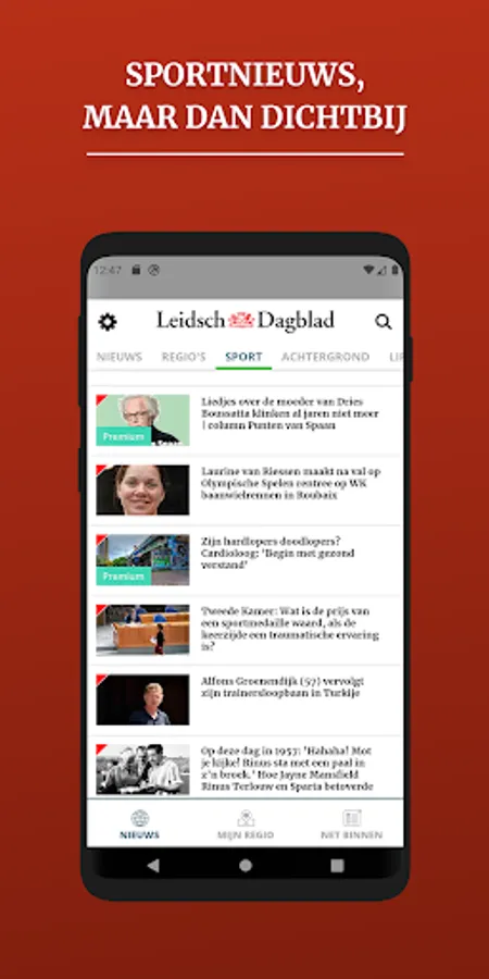 The news app is available for free. You will also find premium items in the app. These pieces offer the best of Leidsch Dagblad and opinion of our well-known columnists. In the app, the premium items are recognizable by the green "Premium" label. These premium items are accessible to Leidsch Dagblad subscribers.