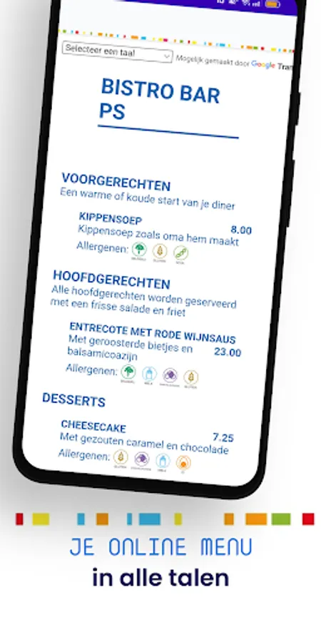 Thanks to the multilingual nature of the menu, your menu can also be translated quickly and easily.