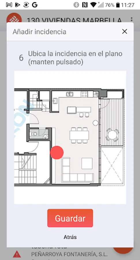 A collaborative solution that allows you to send the reviews and finishes of your project to your subcontractors in real time, from your smartphone or Tablet. You will be able to report incidents from the pit and locate them in the plan of the work.