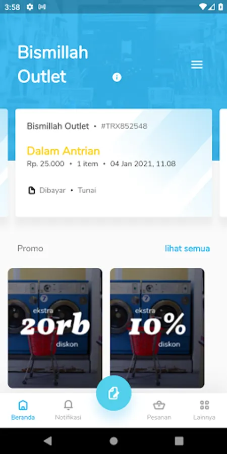 4. When you place an order at an outlet, your order will automatically appear on the Digiwash app
