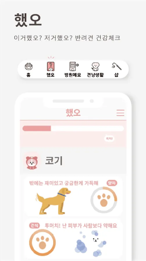 ① Did: Did you take a walk? Did you clean your ears? It manages your dog's hygiene and psychological conditions in advance, and prevents diseases and stress in advance.