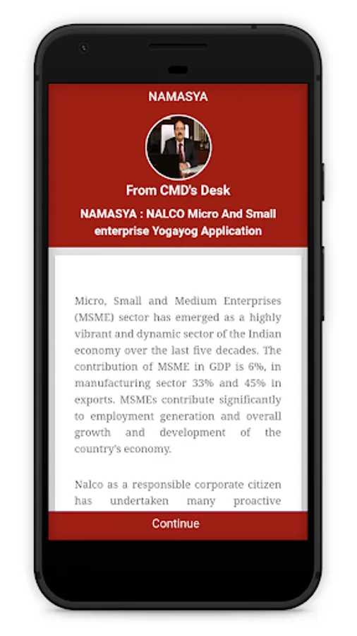 NAMASYA (NALCO Micro &n Small Enterprise Yogayog Application – for MSME vendors of NALCO) provides a platform for MSE vendors to understand NALCO’s efforts towards development of MSE by putting in place MSE related specific programmes and providing special benefits to this sector. Information like Reserved Items, Annual procurement plan, information on other MSE vendors etc. are provided on this easy to use App.