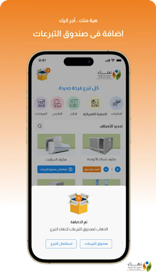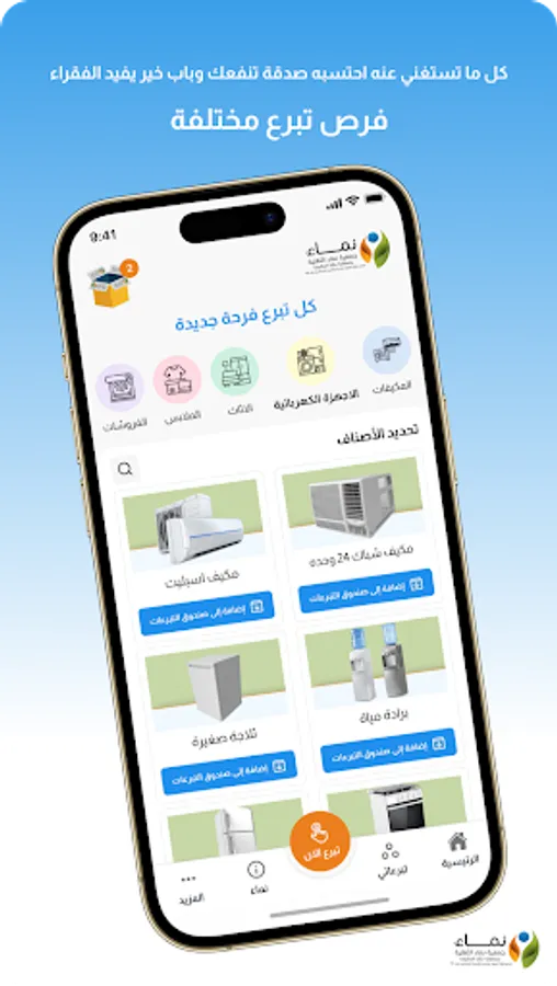 It is one of the many projects offered by the Namaa Association, which is the in-kind donation application, which is a mobile application that guarantees, encourages and consolidates the various humanitarian principles and the role of people in charitable work and receive donations from them in all neighborhoods of Jeddah