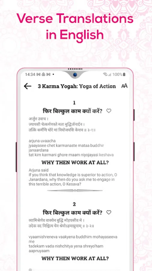 Namah gives you access to English translations of all Sanskrit verses and makes it easier for you to understand its meaning to the fullest.