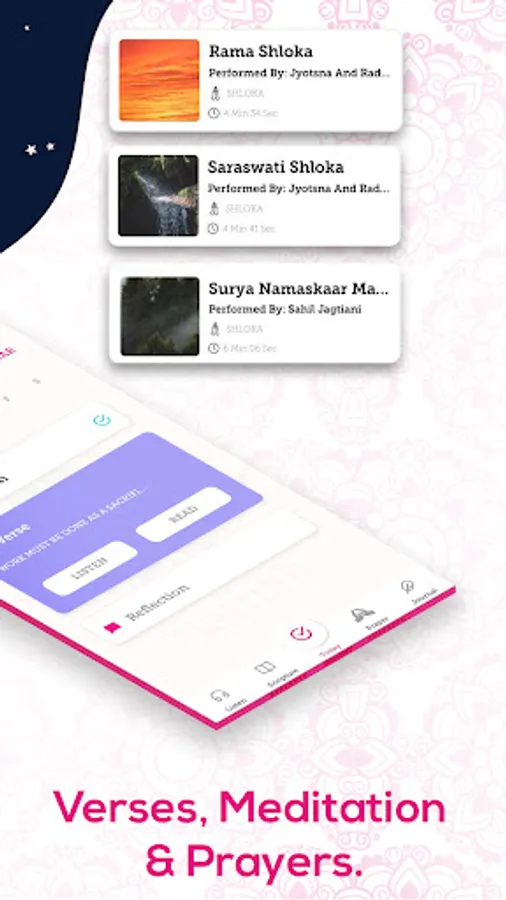 Namah has carefully curated audible & readable content for you to choose from, including shlokas, prayers, and soulful music. It helps you not only establish your worship routines but also build good habits through daily bite-sized curated content, paving the path for your religious journey.