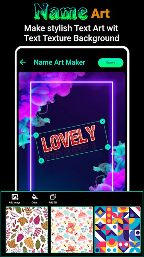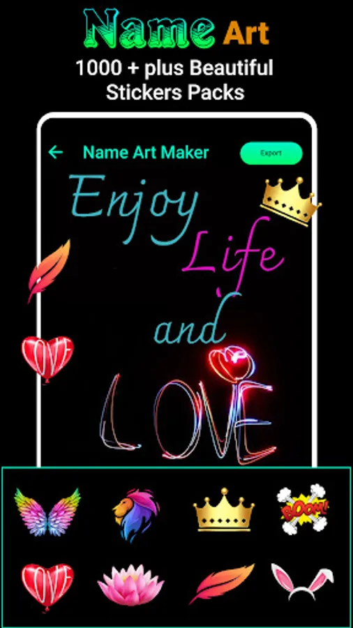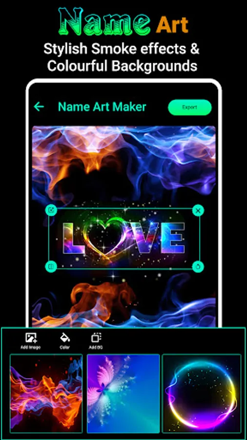 Name Art Maker help you to choose your love font, color, edit size text, drag, rotate your text. You can decorate Name art photo with different effect name, feathers, queen, king crowns, color brush, color filter, heart shapes attractive text color & gradient for your name art. Use Smoke Effect & create art name wallpaper.