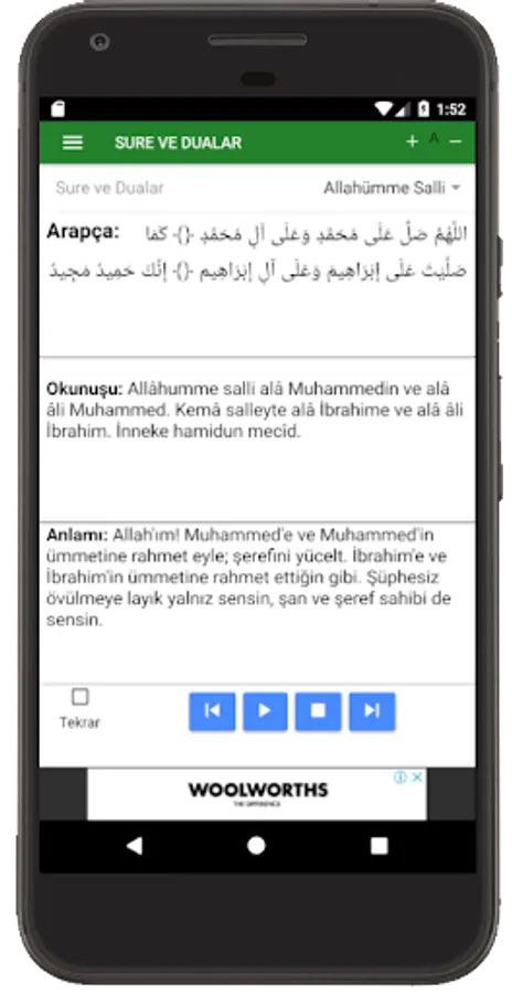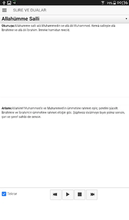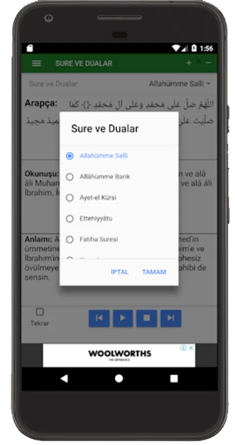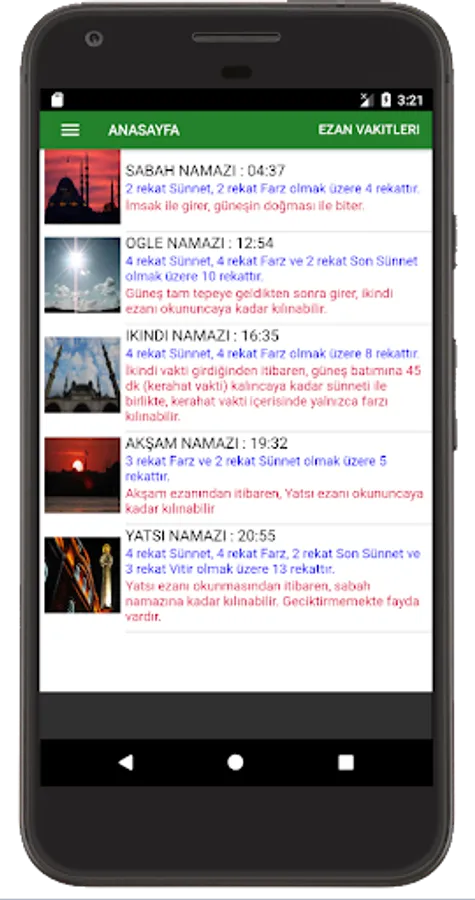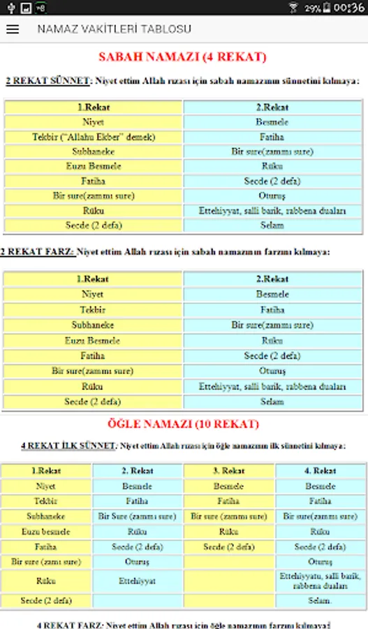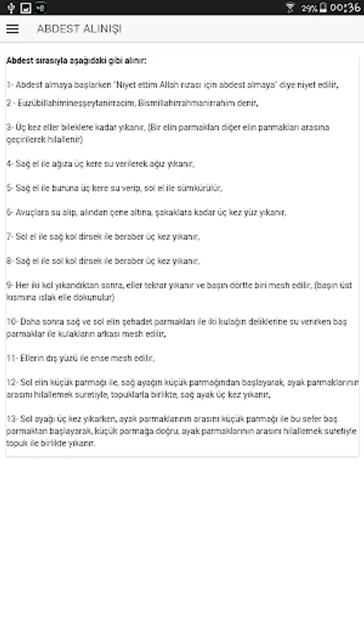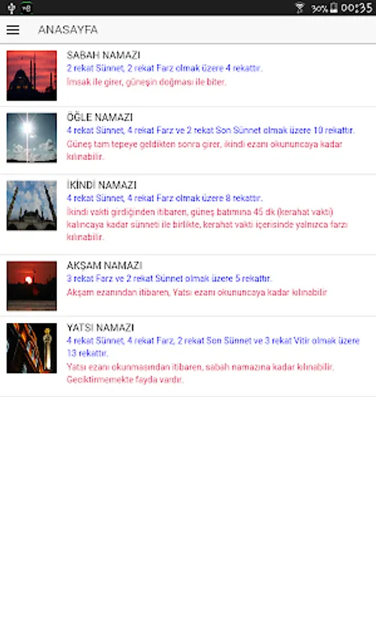 5 daily Prayers (Sabah, Noon, Asr, Maghrib and Isha), Friday Prayer, Taking Wudu, Sura and Prayers