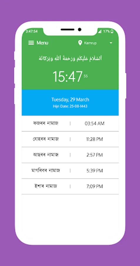 As Prayer Direction and Prayer times vary from different part of the world. Make sure first by selecting different Namaz time calculation methods in the setting screen.