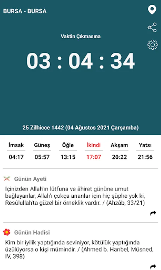 • It is renewed with a single click in 30 days so that you can use the prayer times up-to-date and without internet.