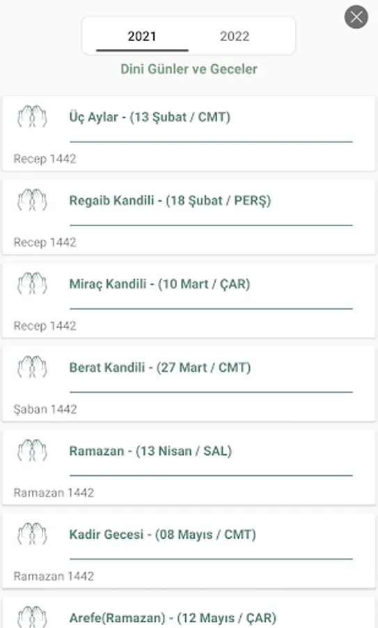 • You will be able to view the dates of Ramadan, Eid al-Adha, and Kandil from the Religious Days and Nights section.
