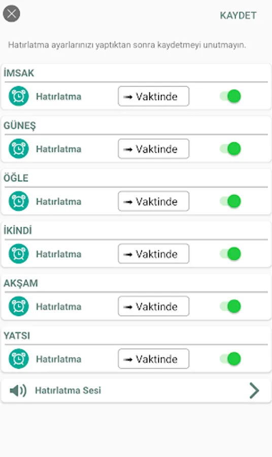 • You can receive reminder notifications at prayer times and 15, 30, 45 minutes before.