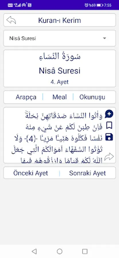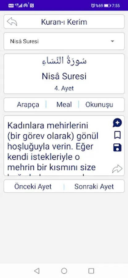 * Reading Koran. You can read Koran, add bookmark and continue from your bookmark in your own language or in Arabic.