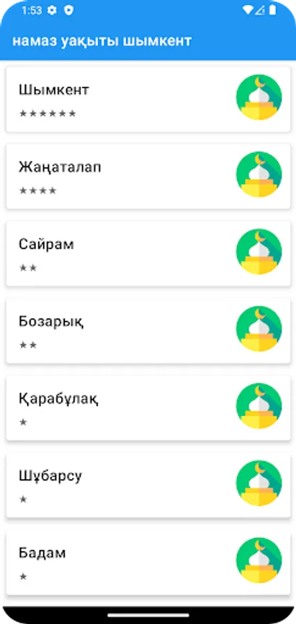 Намаздың тегін кестесі, азан салаты Қазақстан.Намаздың тегін кестесі, азан салаты Қазақстан.Бұл қосымшада сіз Қазақстандағы намаз кестесі, Шымкент қалаларының намаз кестесі туралы ақпаратты таба аласыз.