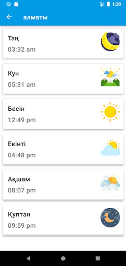 Намаздың тегін кестесі, азан салаты Қазақстан.Намаздың тегін кестесі, азан салаты Қазақстан.Бұл қосымшада сіз Қазақстандағы намаз уақыты алматы қалаларының намаз кестесі туралы ақпаратты таба аласыз.