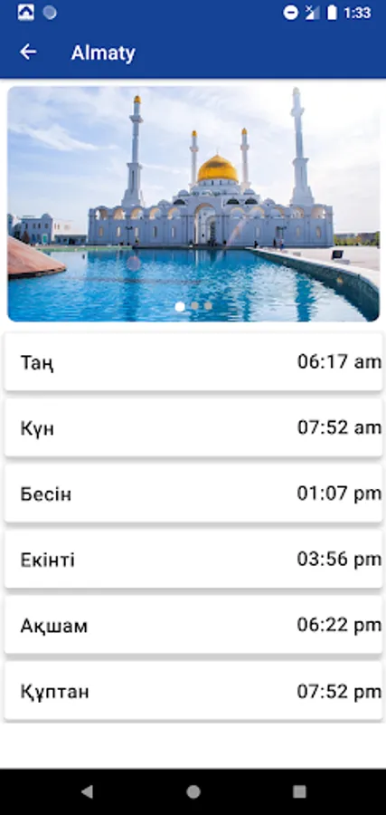 Намаздың тегін кестесі, азан салаты Қазақстан.Намаздың тегін кестесі, азан салаты Қазақстан.Бұл қосымшада сіз Қазақстандағы намаз кестесі, Шымкент, Алматы қалаларының намаз кестесі туралы ақпаратты таба аласыз.