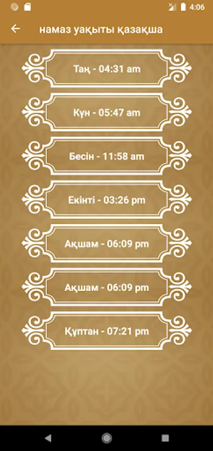 Намаздың тегін кестесі, азан салаты Қазақстан.Намаздың тегін кестесі, азан салаты Қазақстан.Бұл қосымшада сіз Қазақстандағы намаз кестесі, Шымкент, Алматы қалаларының намаз кестесі туралы ақпаратты таба аласыз.