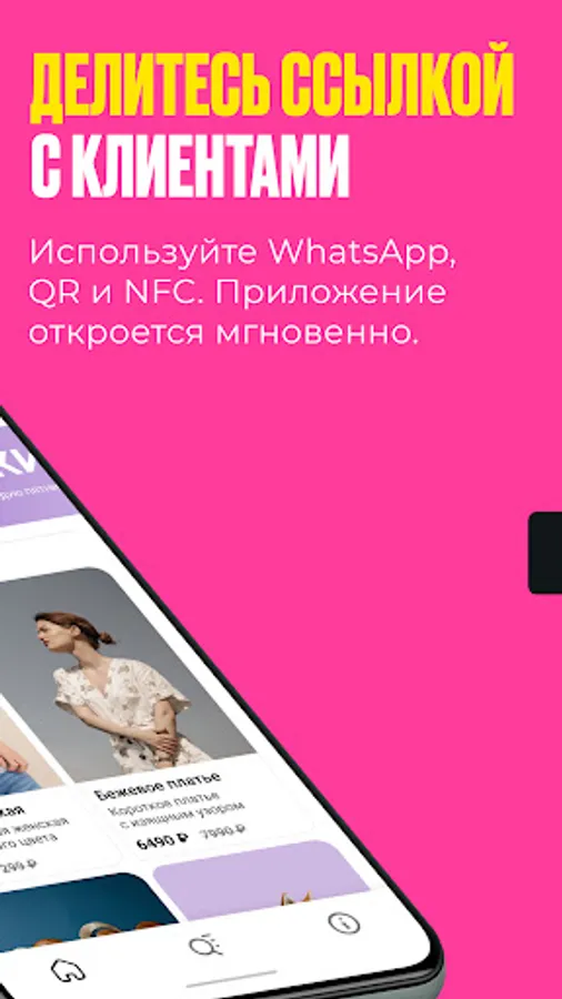 Add a link to the app to your Instagram profile, promotional materials, or product tags in your posts. Share a link to products or the entire catalog in instant messengers.