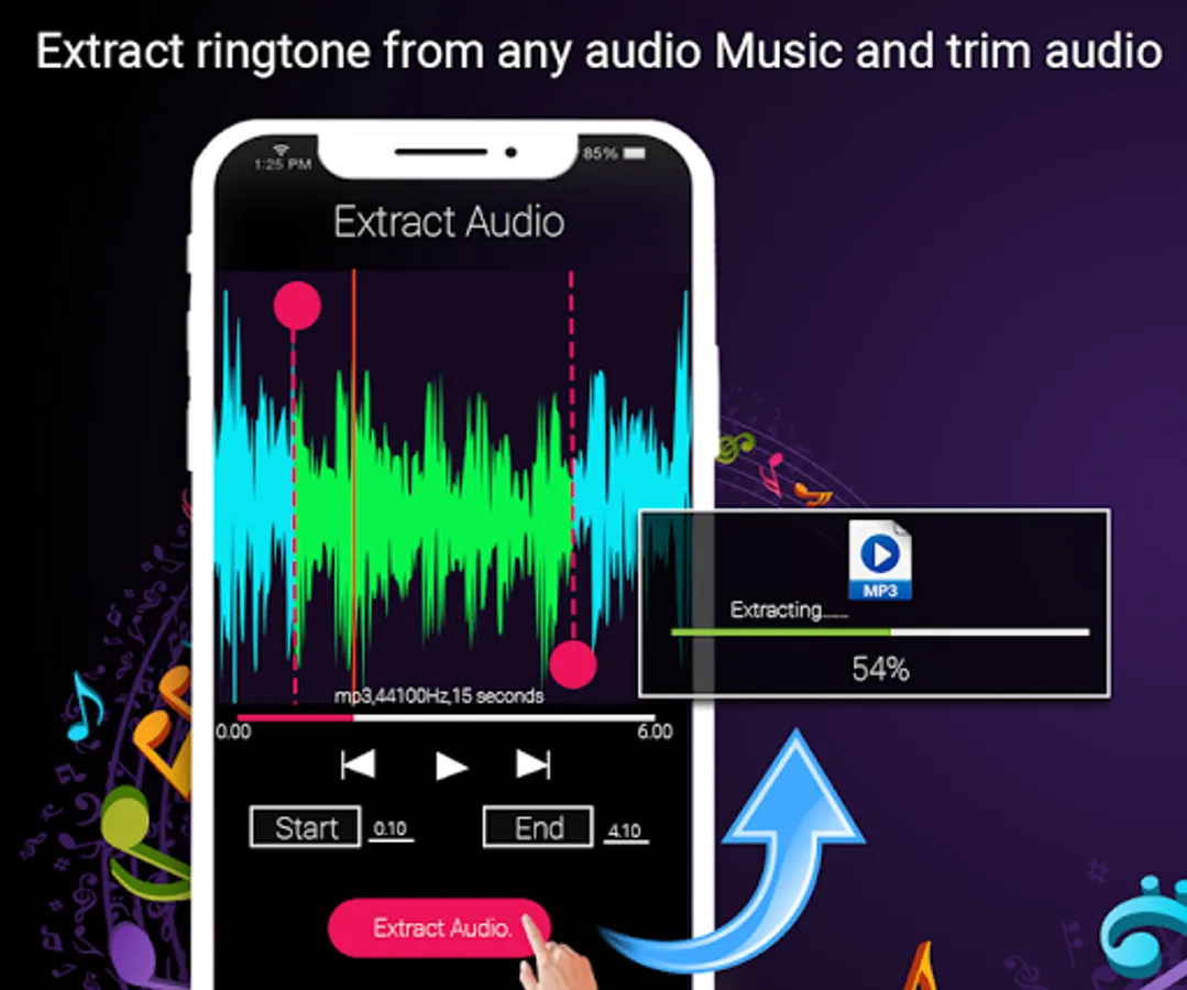 MP3 cutter and audio trimmer to cut and trim audio sons for ringtone making.