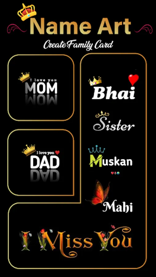 If you need creative name text then here is the app where you can do name on text with different style & font. Shadow Text Art Maker you can choose your love font, color, edit size text, drag, rotate your text. Effect Name - Art that you can decorate it with different decorative item as feathers, queen, king crowns, color brush, color filter, heart shapes attractive text color & gradient for your name art. Name Art shadow maker app has a creative design that makes your name phenomenal. Write your name using 3D Name Maker app and create artistic style of name for signature. Create 3D Name Text On Photos with Name Art Maker. In This app we have added styles 500+ sticker and emojis and diwali background or new year background. You can use this app to create Names with different art & share them with your family and friends. Name Art Photo Editor is your name on photos or anything else you can think of. Name Art Wallpaper has stylish backgrounds and an option to put text on photos with font and style.