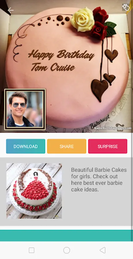 4. After generated images, you will see a Surprise button. By using which you can generate and download surprise name birthday cakes.