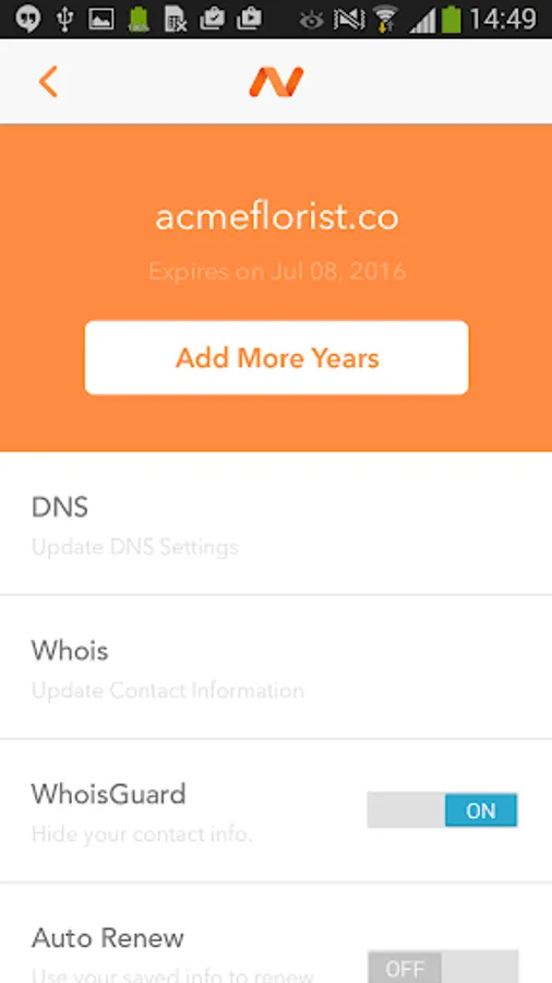 - Manage DNS, WhoisGuard settings and auto-renewal preferences