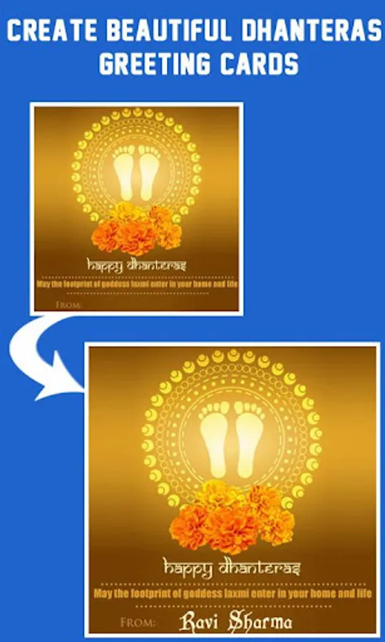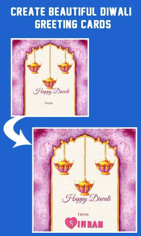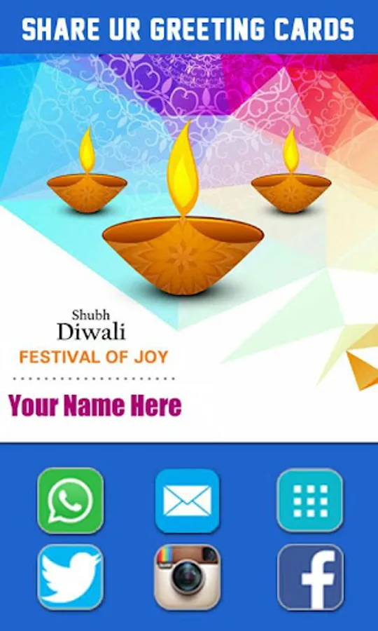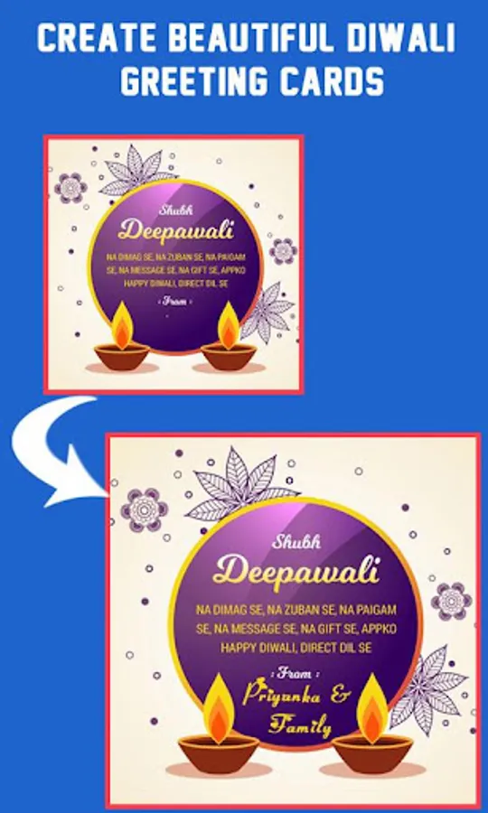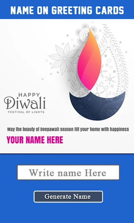 Wish someone with some cool and beautiful cards and your name on their Greeting Cards, Download “Name on Diwali & Dhanteras Greeting Cards” App now. Create your own card and send it to your loved ones.